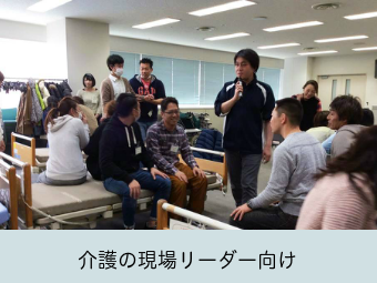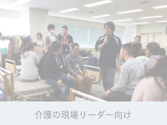 現場リーダーは、自らの資質向上、後輩指導や現場づくりに疲弊しています。本来のやりたい介護を実現するため、拘縮予防やシーティング、イベント企画を通して知識・技術をアップしつつ、介護の魅力を発信するプログラム。