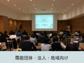 この研修では、お互いの専門性と限界を知ることで、「〜してほしい」と相手に求める連携から「〜しましょうか」の提案型の連携に変わります。対象者の課題に対して、多職種が地域を支える継続した関係づくりをします。