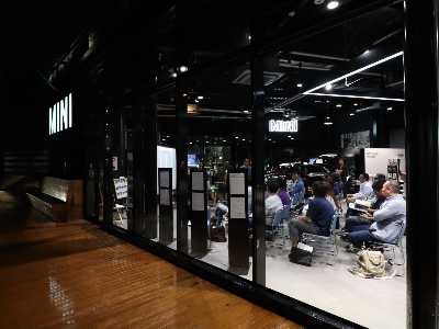 その世界観を体験して頂くため、本書の最終を飾った上杉さんのお店のミニ甲府を会場とさせて頂きました。来場者30名と大盛況!著者が自分の書いた章の簡単な紹介と、来場者のみなさんと意見交換をする座談会を開催しました。本書にも登場する、ミニクーパーに回転シートを設置したものをご紹介して頂くなど盛りだくさんの内容。終了後には、来場者のみなさん同士でもつながる、気持ちのよい場ができました。