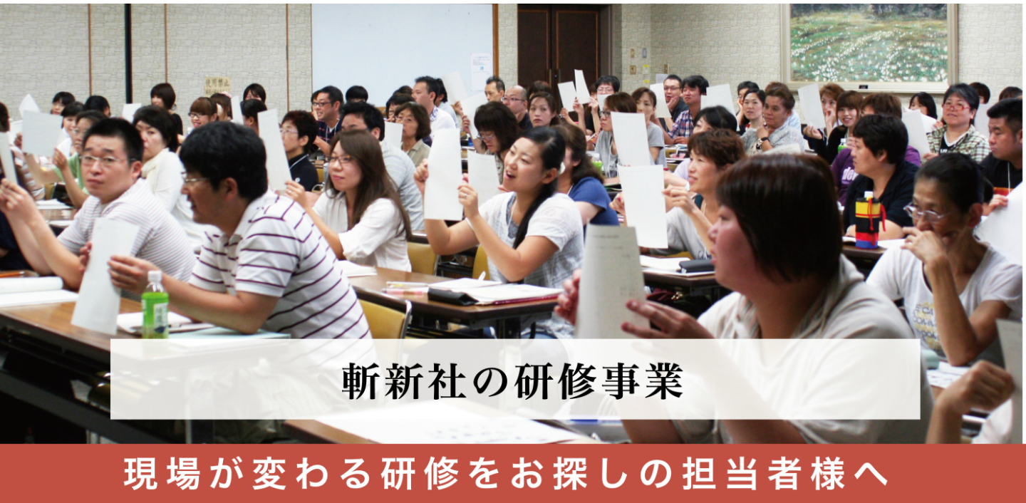 一方的な講義は聴覚刺激のみ。これでは理解は進みません。斬新社の研修は、意図的に感覚を使い、言葉を体感として理解して頂きます。楽しく、知的好奇心を刺激し、現場に役立つ研修をぜひ体験してください。