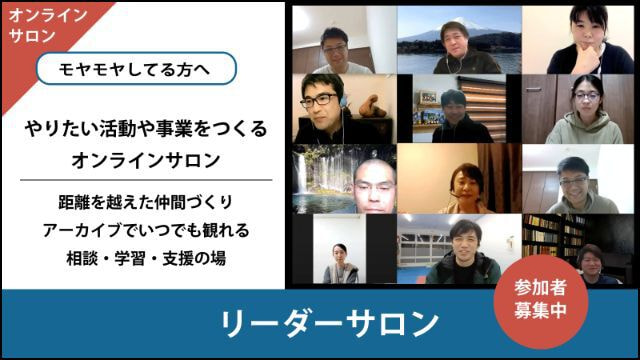 オンラインで全国の仲間と、相談・学習・支援をする場。モヤモヤの段階から、みんなで知恵を出し合い、カタチにしていきます。