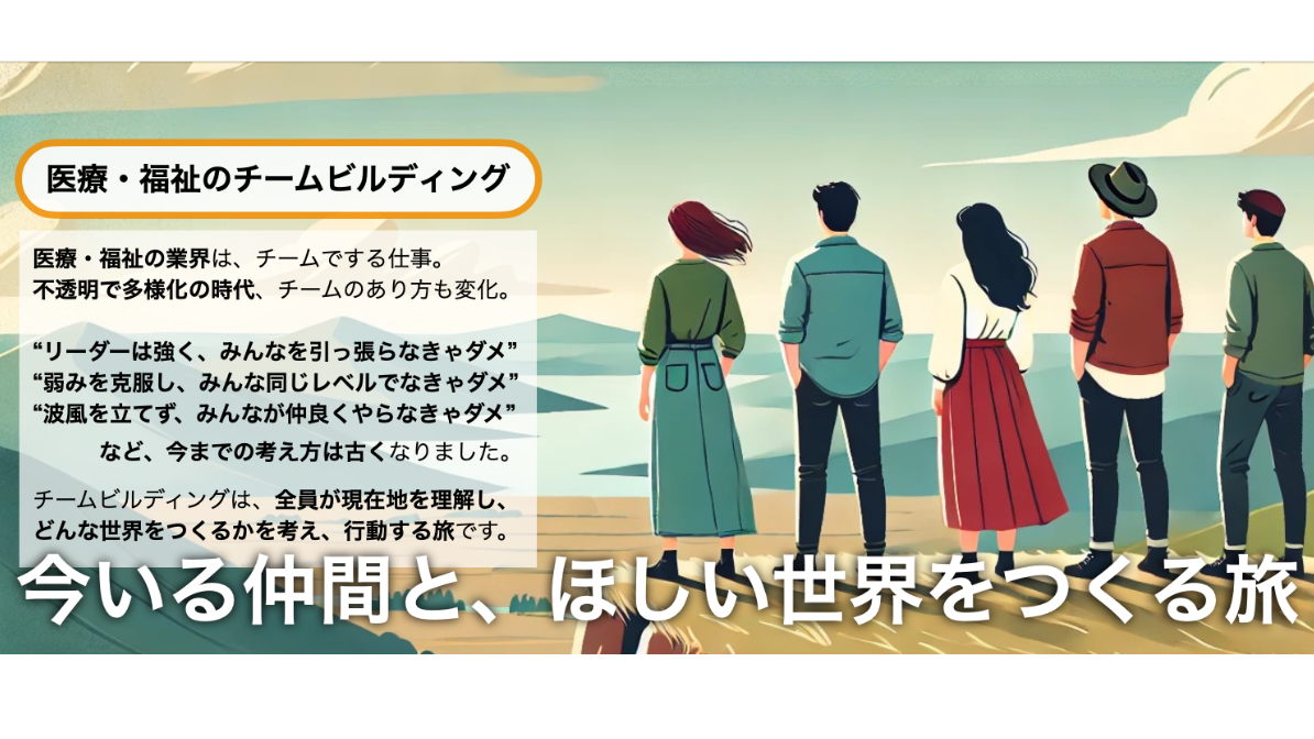 医療・福祉の現場は人手不足。日々の業務を回すので精一杯。思うような仕事ができず、また人が辞めていく。この悪循環を断ち切る、今いる仲間とほしい世界をつくる旅に出ましょう。