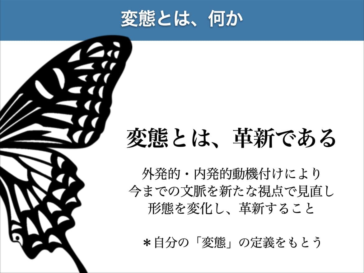 日本変態学会は、変態(Transformation)したい人の学会です。